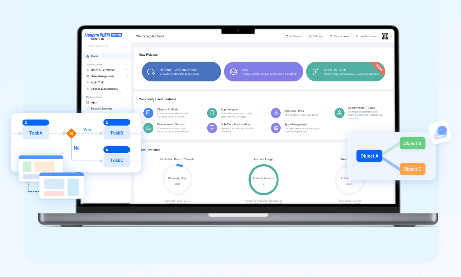 Melalui alur kerja yang divisualisasikan, alur kerja otomatis, dan alur kerja otomatis, proses bisnis yang kompleks dapat diimplementasikan secara fleksibel, mendukung kolaborasi otomatis di berbagai tingkat proses bisnis.